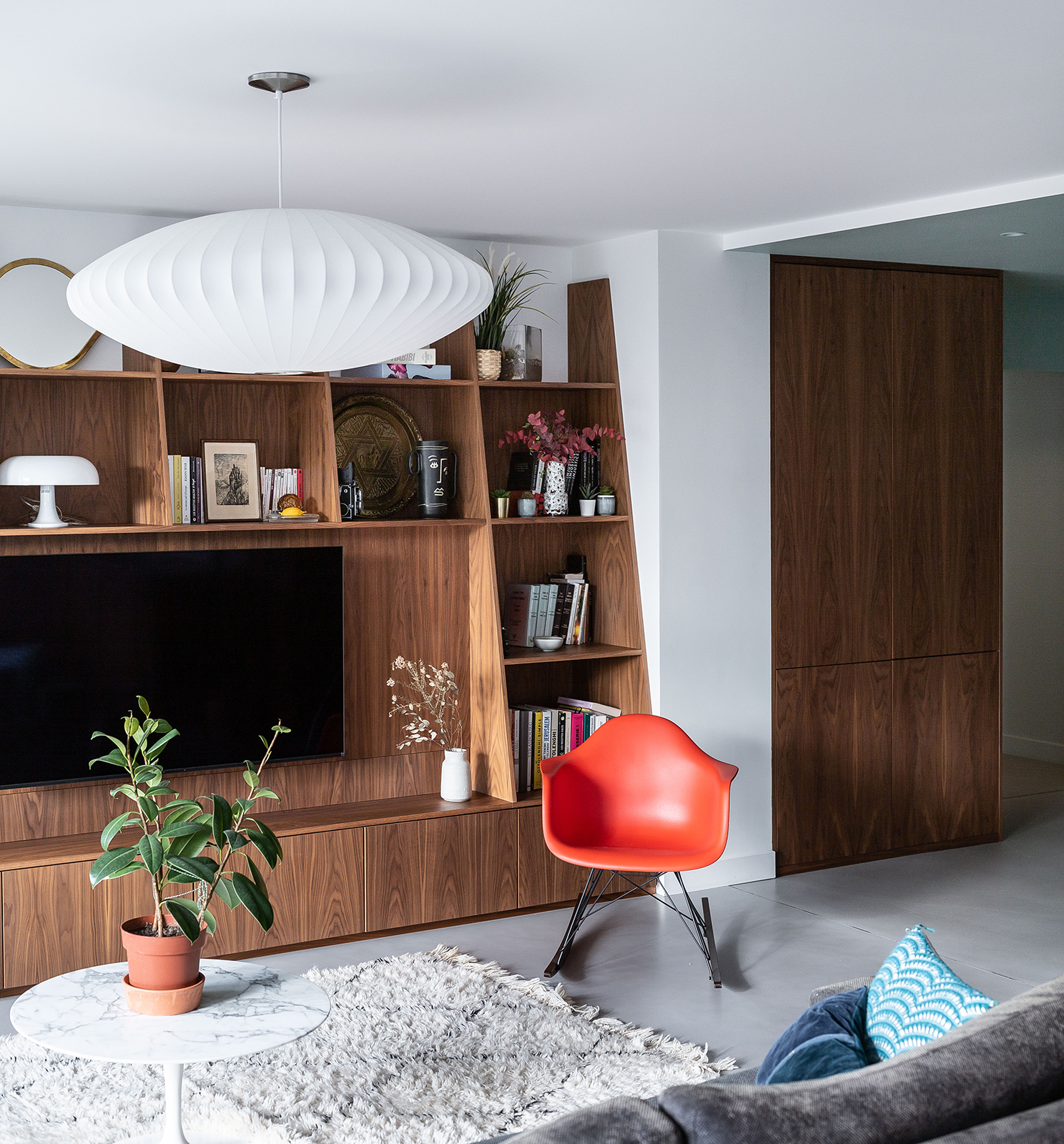 Au cœur du quartier des XV, niché dans le parc du Bon Pasteur, cet appartement à été totalement restructuré et rénové. L’impulsion créative du projet à été le mobilier des clients (Eames, Knoll,…). Nous avons prolongé ce point de départ esthétique dans tout le projet. Le noyer, le Ceppo Di Grès, le béton ciré, le marbre et le travertin ont été sélectionnés afin de donner à cet appartement les allures d’une suite d’hôtel luxueuse.