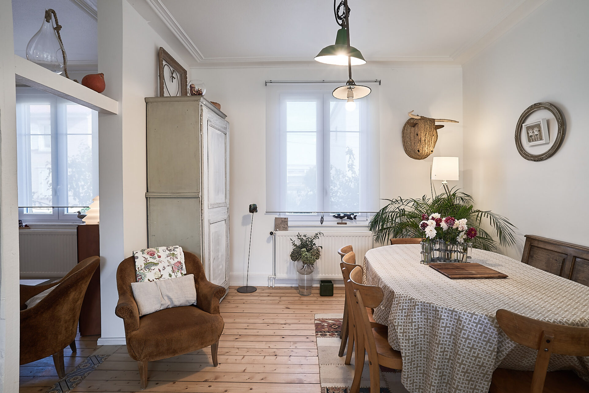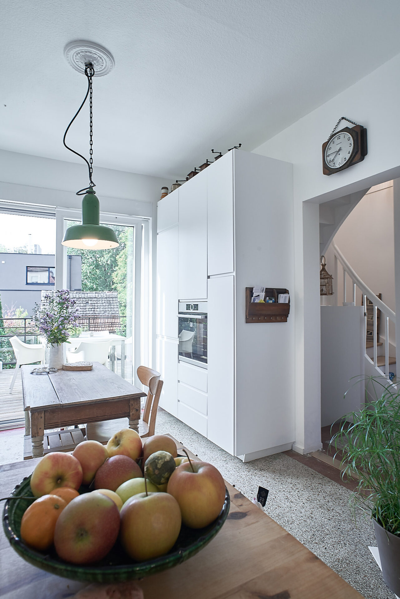 Projet de rénovation d’une maison à la Robertsau. Jolie petite maison de ville avec beaucoup de potentiel. Nous avons restructuré la totalité de la maison afin qu’elle s’adapte au mode de vie des clients. Ils souhaitaient une maison agréable et fonctionnelle. Pour cela, nous avons ouvert la cuisine sur la pièce à vivre. La cuisine se projette côté jardin grâce à une grande baie vitrée ouverte sur une terrasse en bois sur pilotis. Au bout du jardin, depuis la terrasse, la petite dépendance laisse rêver à des projets futurs.